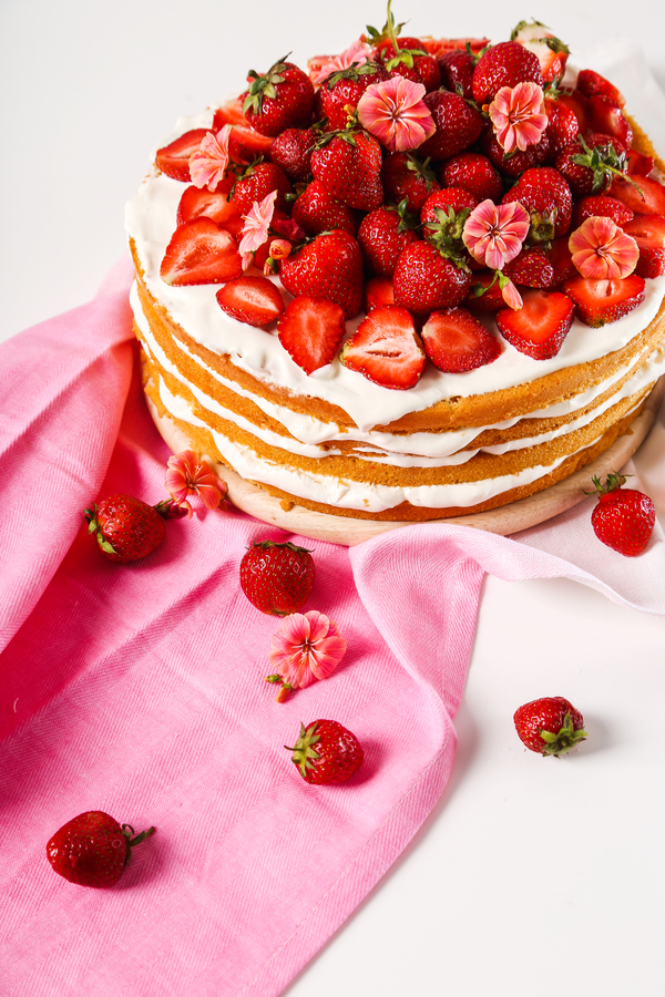 Ručním nebo stojanovým mixérem s nástavcem na šlehání šlehejte máslo a cukr do hladké a krémové konzistence asi 2 minuty. Bílky šlehejte při vysokých otáčkách, dokud se nespojí, asi 2 minuty. Poté zašlehejte zakysanou smetanu a vanilkovou pastu BAM. Při nízkých otáčkách mixéru přidávejte suché přísady, dokud se nespojí. Při stále nízkém stupni mixéru pomalu přilévejte mléko, dokud se nespojí. Vmíchejte jahodové pyré a ujistěte se, že na dně mísy nejsou žádné hrudky.