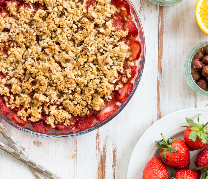 Vychutnejte si lahodný domácí jahodový koláč s křupavou ovesnou drobenkou. Tento jednoduchý recept kombinuje čerstvé jahody s bohatou směsí křupavých vloček a přírodního sladidla BAM bez kalorií, upečený do dokonalé zlatavé barvy.