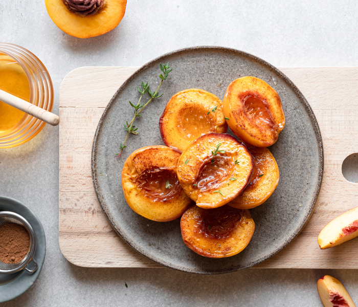 Pečené broskve zkaramelizují a stanou se ještě sladšími, zatímco přírodní sladidla, vanilka a skořice jim dodají kouzelné tóny. Podávejte je teplé se studenou vanilkovou zmrzlinou nebo osvěžujícím řeckým jogurtem pro dokonalou harmonii chutí.