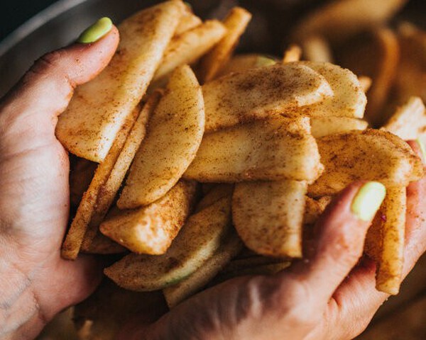 Existuje spousta různých druhů jablek, ale ne všechna se hodí k přípravě jablečného koláče. Do tohoto receptu se nejlépe hodí jablka Granny Smith (ta světle zelená ). Jsou správně kyselá a díky své struktuře si během pečení dobře drží strukturu, takže se do jablečného koláče budete chtít zakousnout.